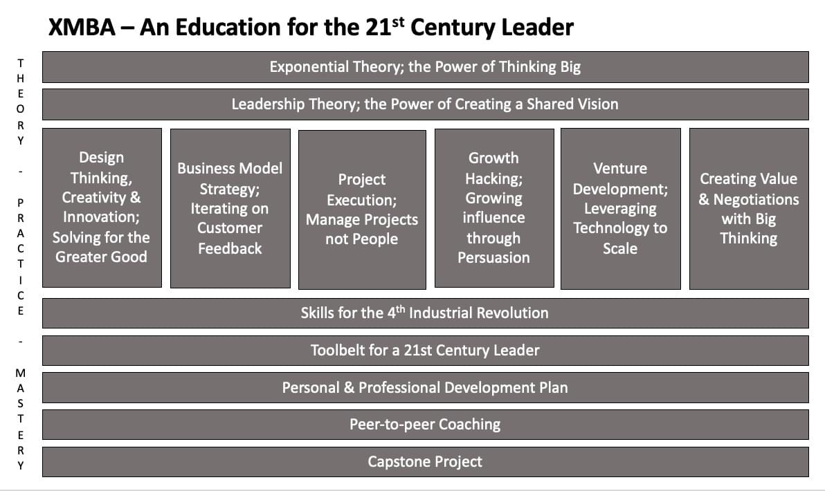 The XMBA is a collection of ten modules. After these ten lessons, the goal is to understand, practice, and master the Exponential Theory ultimately creating a profitable business as your capstone.